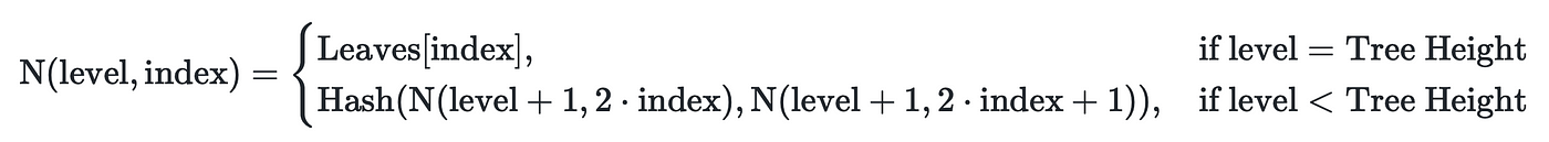 Recalling the formula for computing the value of node in a merkle tree that we learned in the previous installment: