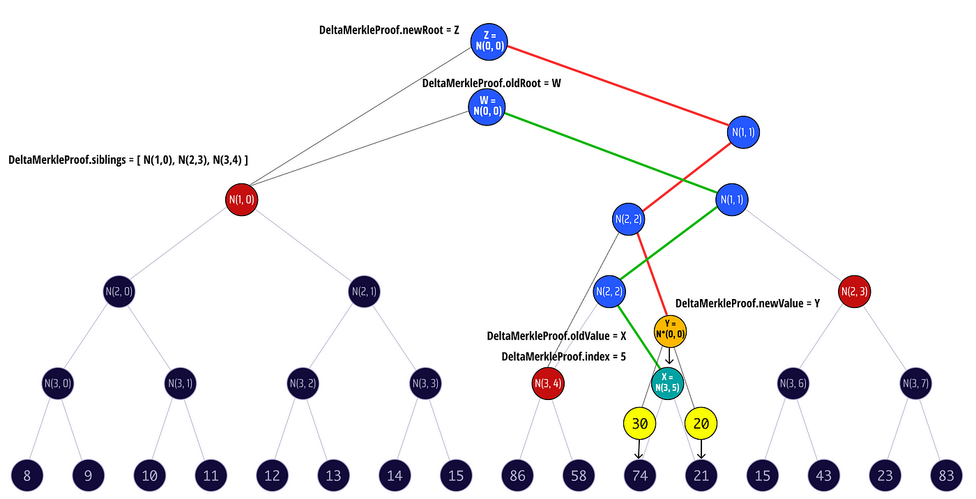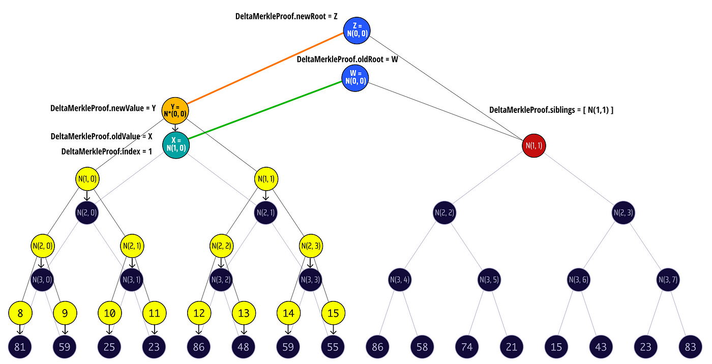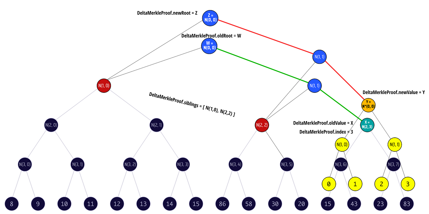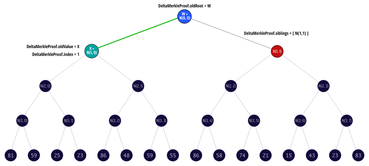- We know that the old root of the delta merkle proof will be our old N(0,0)