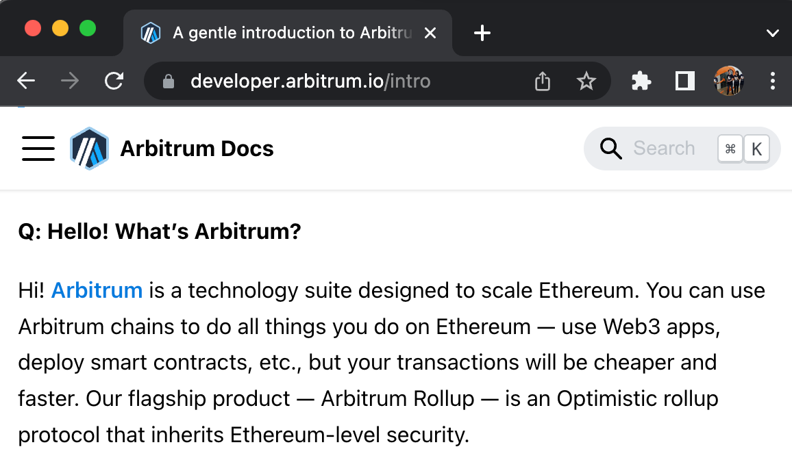 Source: https://developer.arbitrum.io/intro#q-hello-whats-arbitrum